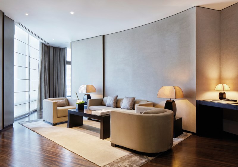 Die Zimmer und Suiten setzen auf klare Linien und durchdachte Funktion. Bad mit Badewanne und separater Regendusche/WC, Bademantel, Hausschuhe und Pflegeprodukte Armani/Privé schaffen Struktur im Alltag. Entertainment und Komfort sind mit Flachbild-TV, DVD-Player, Spielkonsole und schallisolierten Bereichen gelöst; WLAN, Schreibtisch und Safe runden die Ausstattung ab.