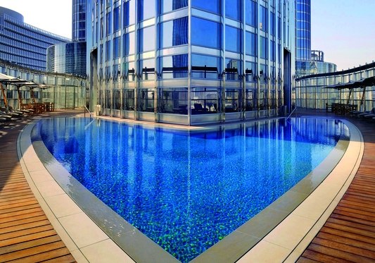 - Urbanes Schwimmen: Dachterrassenpool für Bahnen mit City-Ambiente.