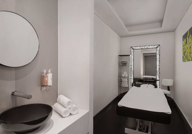 - Spa: Kompaktes Spa-Setting mit Massage, Dampfbad und Sauna.