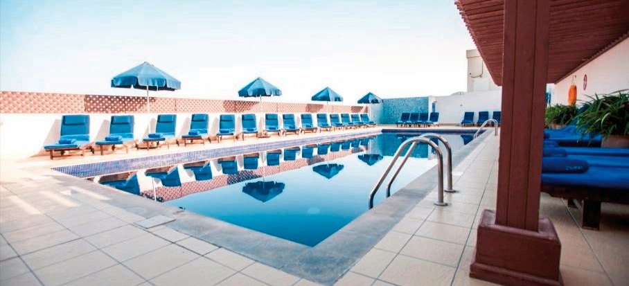 Im Citymax Hotel Bur Dubai wohnt Ihr mitten in Bur Dubai, mit einem klaren Fokus auf Stadterlebnis und unkomplizierten Komfort. Die Atmosphäre wirkt lebendig, ohne überladen zu sein: Lobby, Rezeption und Coffeeshop sind Eure Anlaufstellen, wenn Ihr zwischen Erkundungstouren kurz zur Ruhe kommen wollt. Auf dem Dach wartet der Außenpool – ein urbaner Rückzugsort mit Blick über die Stadt, ideal für eine erfrischende Pause nach einem Tag zwischen Souks, Malls und Meeresbrise an der nahen Küste.