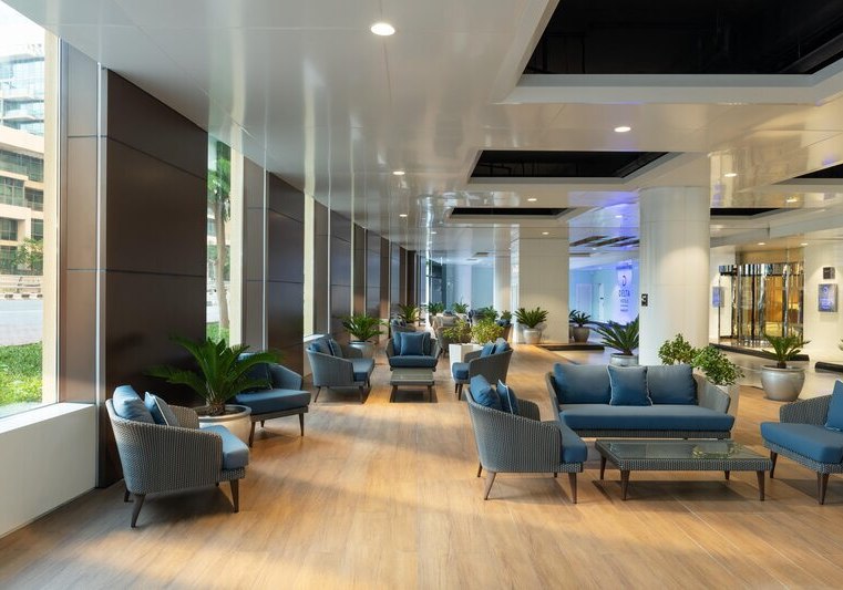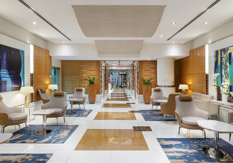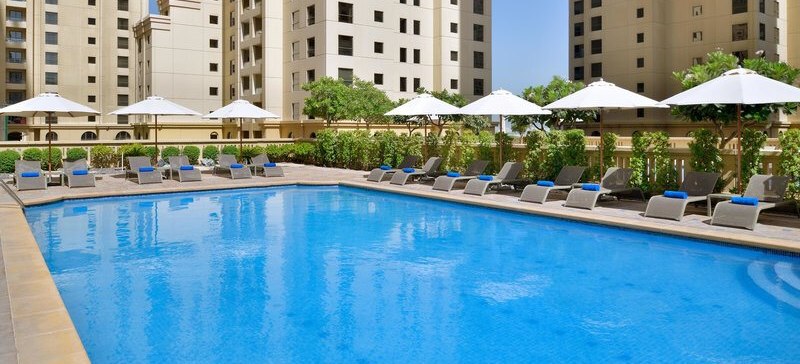 Im Delta Hotels Jumeirah Beach, Dubai wohnt Ihr mitten zwischen Strandmomenten und Citypuls. Das Haus erstreckt sich über 45 Etagen und setzt auf klare, funktionale Bereiche: eine helle Lobby mit Rezeption, Coffee-Lounge und Bar, dazu Pool mit Sonnenterrasse und Poolbar. WLAN nutzt Ihr im gesamten Hotel kostenfrei, Strandtücher erhaltet Ihr bequem über den Verleih.