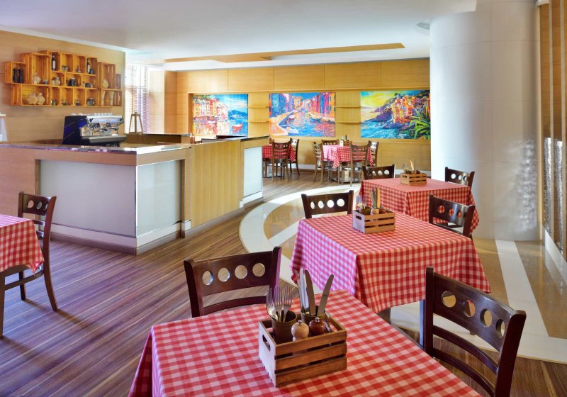 Zwei Profile prägen die Küche: Im Fogueira in der 35. Etage erwartet Euch brasilianische Küche mit Aussicht. Im Speakeasy genießt Ihr amerikanische Klassiker in lässigem Rahmen. Ergänzend stehen Bar, Poolbar, Coffee-Lounge und Snackbar für Pausen und Abende bereit.