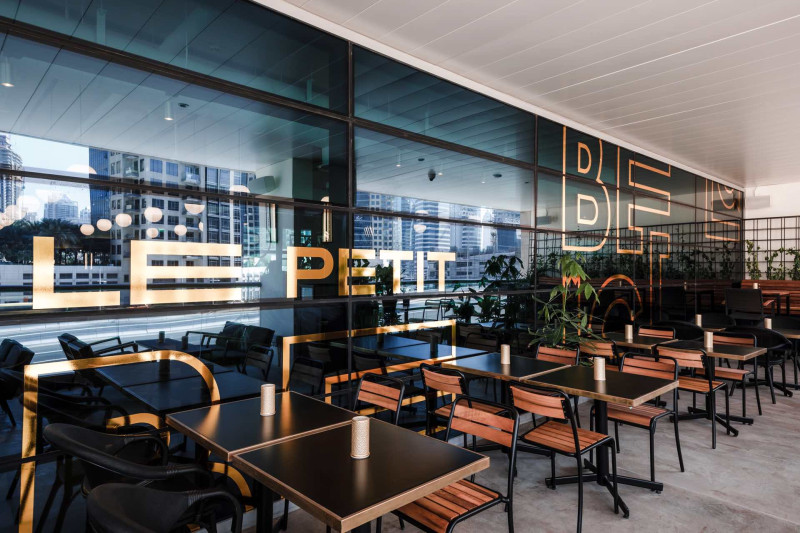 - Raum & Blick: 36–44 m² mit Ausblick auf Downtown oder Bay Square.