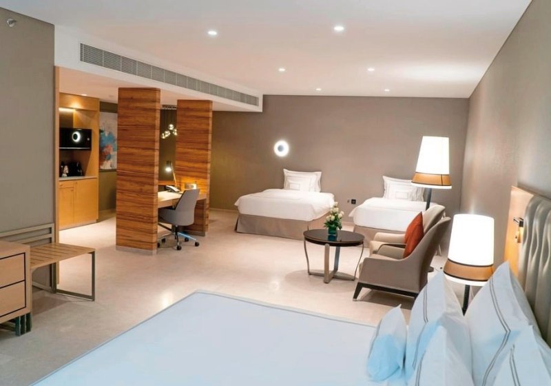 Die 228 Zimmer sind schallisoliert und auf Funktion getrimmt. Ihr wählt zwischen Doppel- und Kingsize-Betten, nutzt Smart-TV, Safe und WiFi, bereitet Tee oder Kaffee am Morgen zu. Familien profitieren von Familienzimmern und getrennten Schlafzimmern, für längere Aufenthalte stehen Sitzecken und teils Wohnzimmer bereit. Highlight: Klare Ruhe dank Schallisolation und Stadtblick.