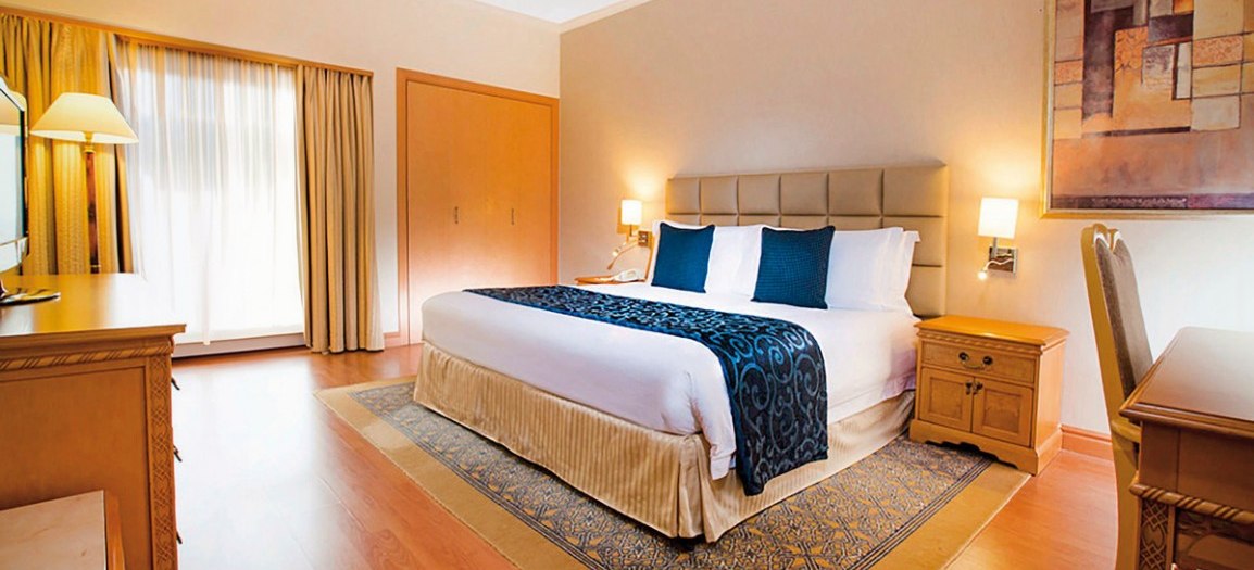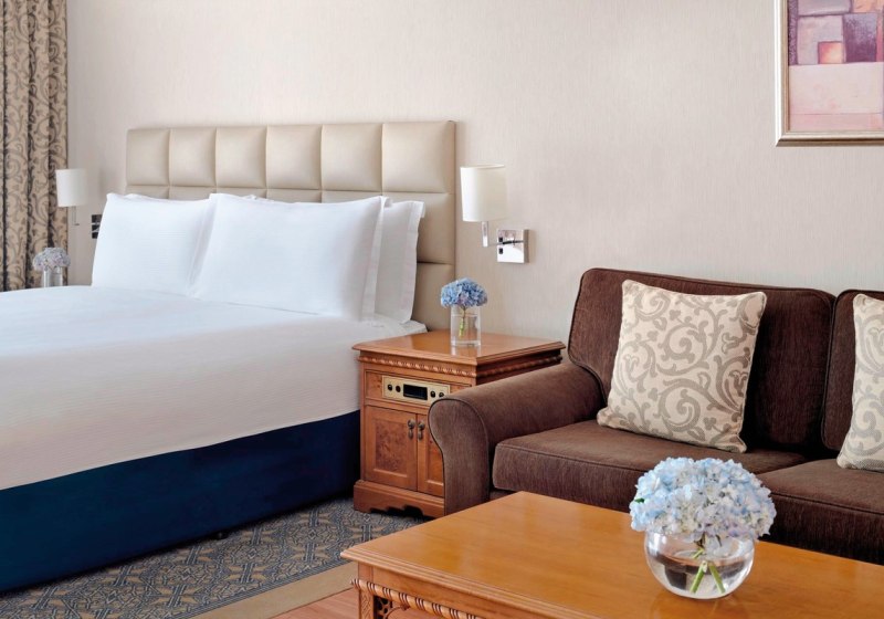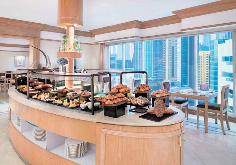Die Zimmer und Suiten sind auf Funktion und Ruhe getrimmt: Klimaanlage, schallisolierte Fenster, Safe und WLAN gehören ebenso dazu wie TV und Arbeitsbereich. Ihr wählt Doppelbett, Twin- oder Kingsize-Optionen; Zustell- und Kinderbetten stehen bereit. Je nach Kategorie blickt Ihr auf die Stadt oder direkt auf die Sheikh Zayed Road.