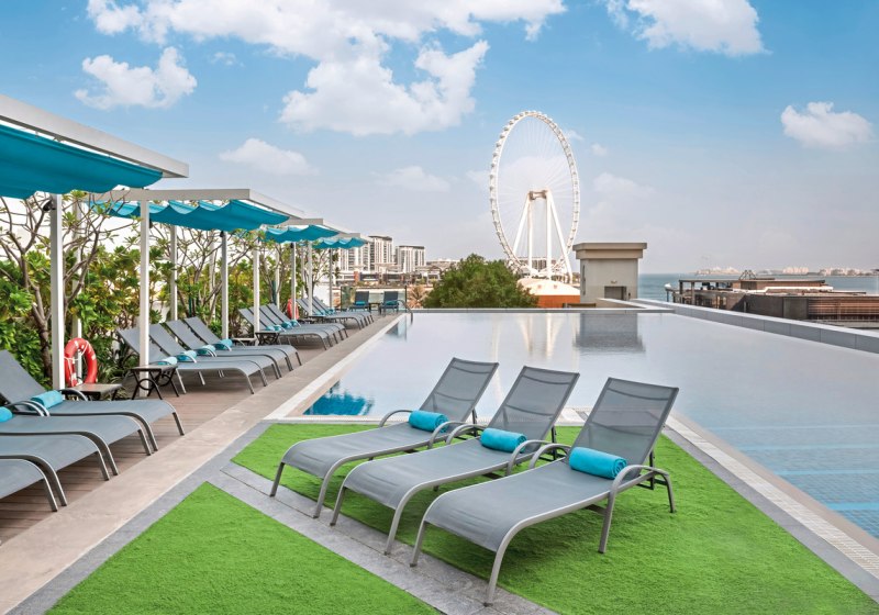 JA Ocean View Hotel bringt Euch an The Walk/JBR nah ans Wasser und mitten ins urbane Leben. Meerblick-Balkone, vielseitige Küche, Kinderbereiche und Healthclub schaffen klare Strukturen für entspannte Tage.