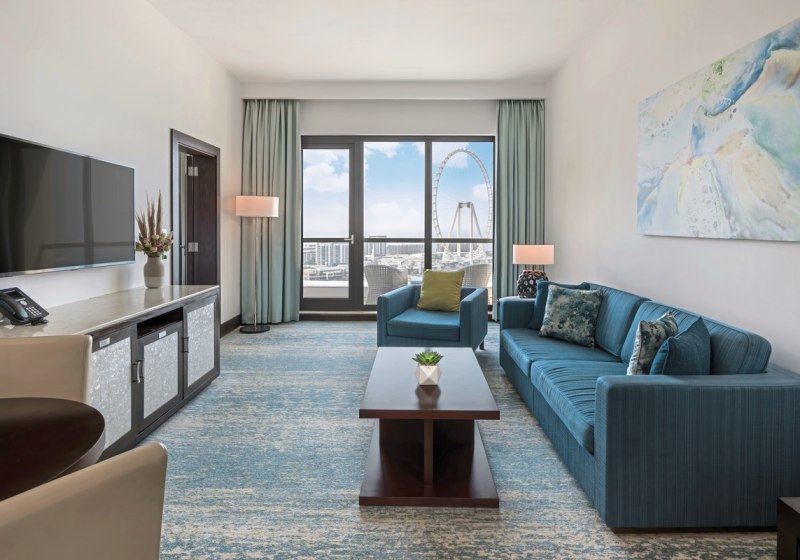 Die Lage verbindet Strandnähe und Stadterlebnis: direkt an The Walk/JBR, wenige Schritte zur Dubai Marina, rund 25 km nach Downtown Dubai und etwa 40 km zum Dubai International Airport. Das Meer liegt circa 100 Meter entfernt, Restaurants und Einkaufsmöglichkeiten säumen die Umgebung. U-/S-Bahnstation, Bus- und Bahnhof sind rund 350 Meter beziehungsweise fünf Gehminuten erreichbar.