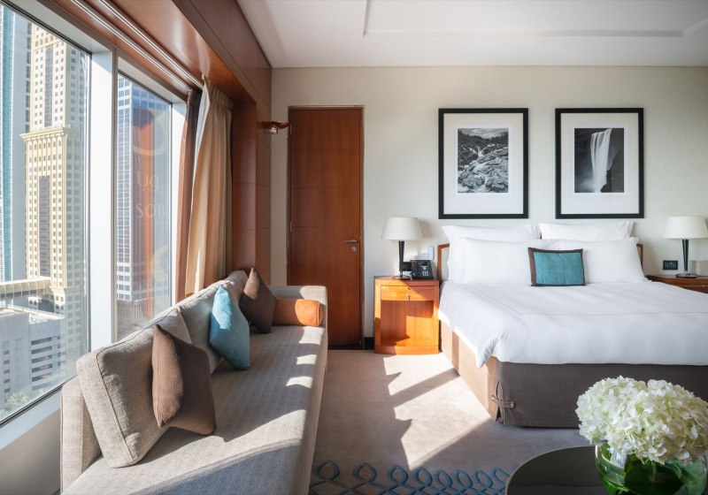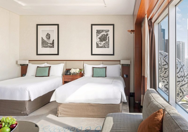 Im Jumeirah Emirates Towers wohnt Ihr in einem markanten Hochhaus mit 48 Stockwerken, direkt neben dem Museum of the Future. Der urbane Rahmen wirkt klar strukturiert: 400 Zimmer, eine großzügige Empfangshalle und Bereiche, die auf effiziente Abläufe ausgelegt sind. Hier fühlt sich der Aufenthalt wie ein fokussierter City-Trip mit komfortablen Rückzugsorten an. Highlight: Ikonische Lage am Museum of the Future, perfekt für City-Trips.