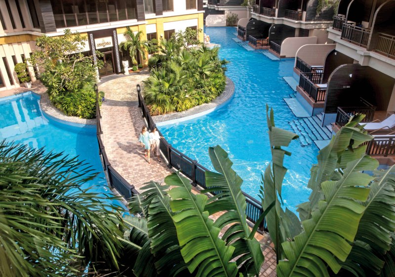 - Wasserwelten: Infinity-Pool, Süßwasserpool und drei Lagunenflächen.