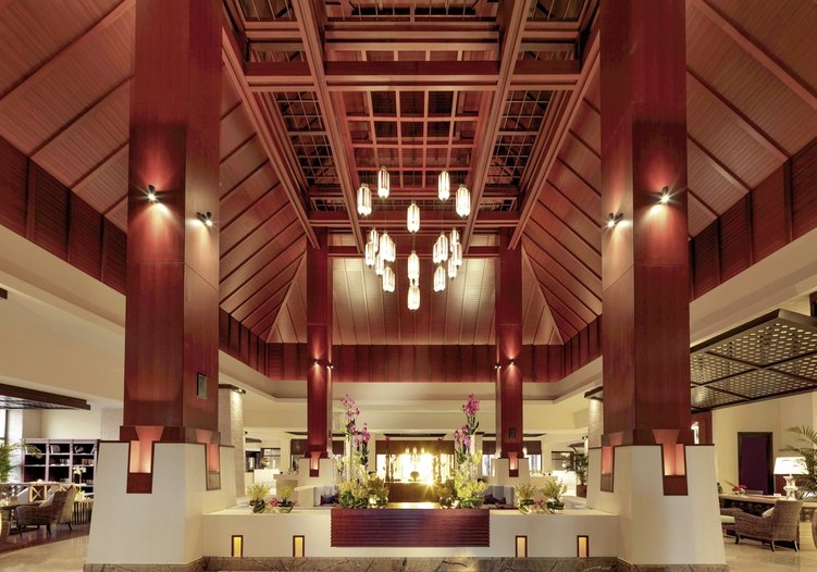 Die Gartenanlage führt Euch an Süßwasser-Swimmingpool, Infinity-Pool und drei Lagunen vorbei bis zum Strand. Gemeinschaftsbereiche wie Foyer, Bibliothek und TV-Raum bieten ruhige Innenräume, dazu kommen Shops, Souvenir-Bereich und ein Supermarkt. Highlight: Klare Wegeführung zwischen Poollandschaften und Strandzugang.