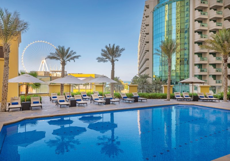 Hilton Dubai The Walk verbindet die Lage an der Promenade The Walk mit der unkomplizierten Freiheit eines City-Strandhotels. Ihr lebt mitten im Geschehen und habt zugleich Rückzugsräume: ein temperierter Süßwasserpool, eine ruhige Liegewiese, dazu kostenfreies WLAN in allen Bereichen. Familien, Strandreisende und Business-Gäste finden gleichermaßen Struktur: Kidsclub für 4–12-Jährige, Fitnesscenter, Boutiquen und ein Friseur sorgen für einen effizienten, angenehmen Tagesablauf.