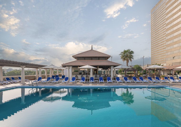 Die Freizeitflächen sind konkret: Außenpool ganzjährig, Sonnenterrasse mit Liegen, Schirmen und Badetüchern. Eine hoteleigene Einkaufspassage mit Eislaufbahn erweitert das Programm um eine seltene Stadthotel-Option. Shuttleservice bringt Euch zum Strand, Roomservice und Wäscherei sind rund um die Uhr bzw. flexibel verfügbar.
