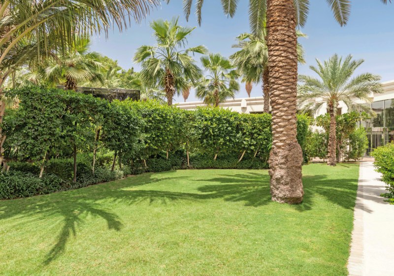 Vier Pools mit Liegestühlen und Sonnenschirmen liegen in einer gepflegten Gartenanlage; Kinderpool, Poolbar und Terrassenbereiche ergänzen. Weitere Services wie Wäscherei (gegen Gebühr), Shops, Geldautomat und Ladestation für Elektrofahrzeuge runden ab. Hotelsprache: Deutsch, Englisch, Arabisch. Landeskategorie: 5 Sterne. Highlight: Vier Pools, Garten und klare Service-Struktur für entspannte Abläufe.