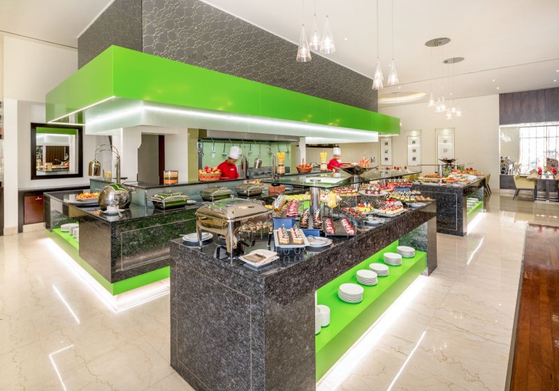 Im All-Day-Dining-Restaurant esst Ihr flexibel zu nahezu jeder Tageszeit. Die Vielfalt an Verpflegungsoptionen ist deutlich: Frühstück, Halb- und Vollpension sowie All-Inclusive sind verfügbar; dazu alkoholfreie und alkoholische Getränke sowie Diätgerichte. Ein Coffee Shop versorgt Euch zwischendurch, die Poolbar liefert Erfrischung nach einer Runde im Wasser.