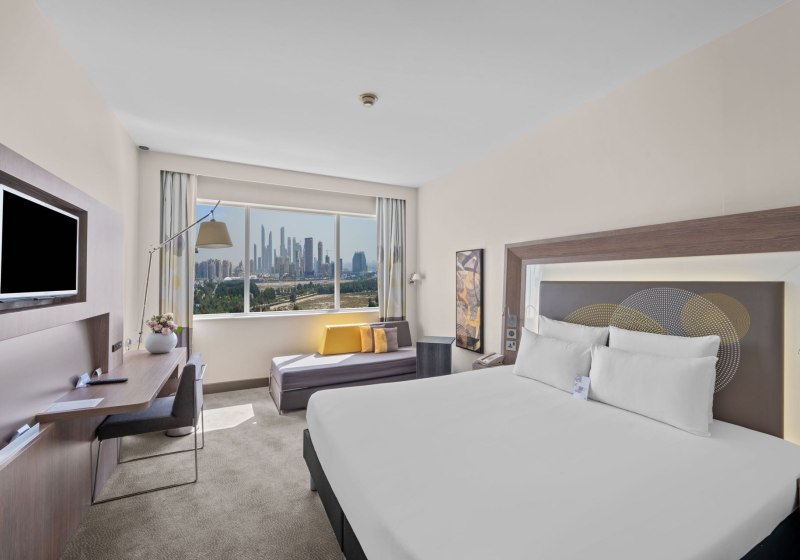 Novotel World Trade Centre Dubai verbindet zentrale Lage an der Sheikh Zayed Road mit entspannter Urbanität. U-Bahn fußläufig, kurze Wege zu Burj Khalifa und Dubai Mall, dazu Jazzbar mit Live-Musik, Pool, flexibles All-Day-Dining und Services, die Euren Aufenthalt verschlanken.