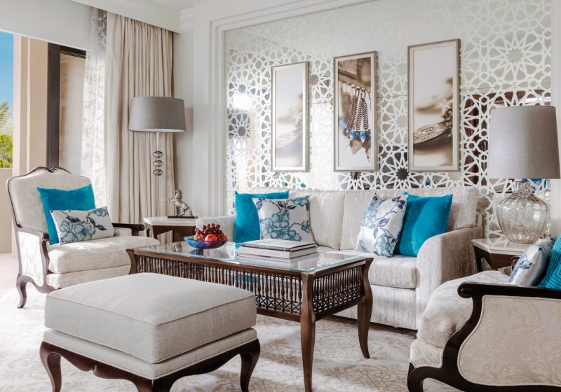 Im Arabian Court verteilen sich 157 Zimmer und 10 Suiten, The Palace bietet 221 Unterkünfte, The Residence 48 Zimmer und 2 Poolvillen. Insgesamt stehen 438 Zimmer bereit, darunter 77 Suiten. Das Resort wurde 1999 erbaut und 2021 renoviert, was den gepflegten Eindruck der Wohnbereiche unterstreicht.