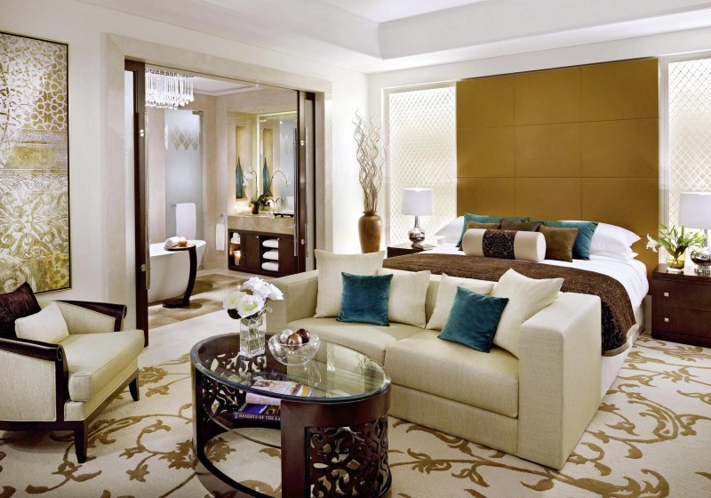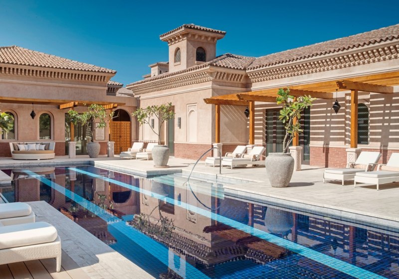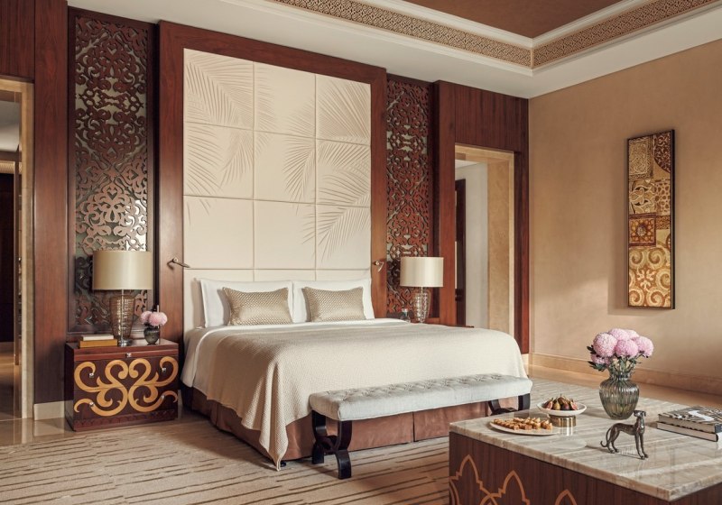 Im One&Only The Palm wohnt Ihr auf dem westlichen Bogen der Palm Jumeirah direkt am 450 Meter langen Privatstrand. Die niedrige Zimmeranzahl mit 95 Zimmern und Villen schafft Ruhe und Raum. Drei Pools, darunter der Adults-Only-Pool Safina und ein 18‑Meter-Außenpool, geben Eurem Tag Struktur – vom ersten Schwimmzug bis zum Sonnenuntergang.