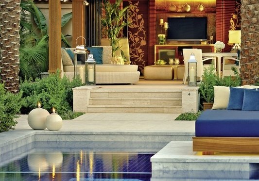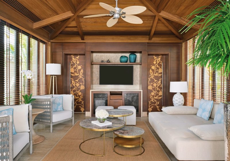 Die Anlage ist bewusst überschaubar: 95 Zimmer und Villen, eine ruhige Gartenstruktur und direkte Wege zu Strand, Pools und Restaurants. An Pool und Strand stehen Liegen, Sonnenschirme und Badetücher bereit. Boutique, Friseur und eine 24‑Stunden‑Rezeption ergänzen die Infrastruktur.