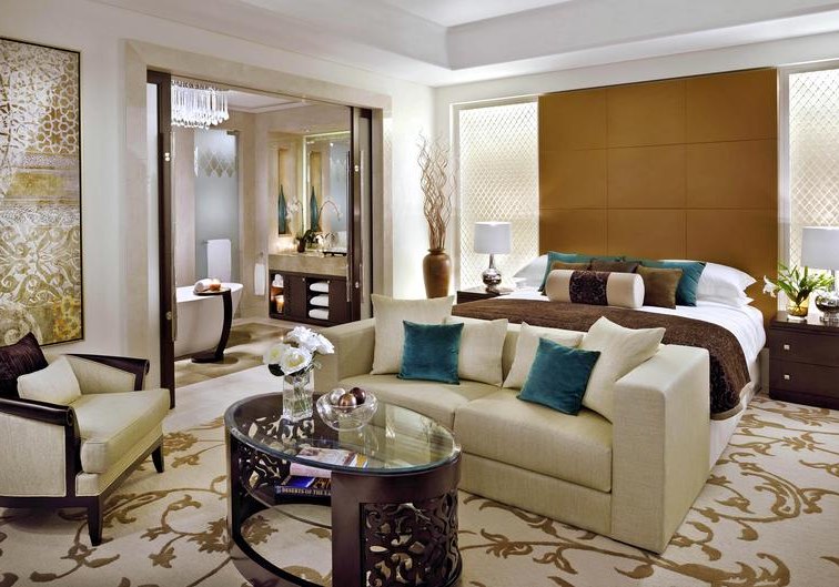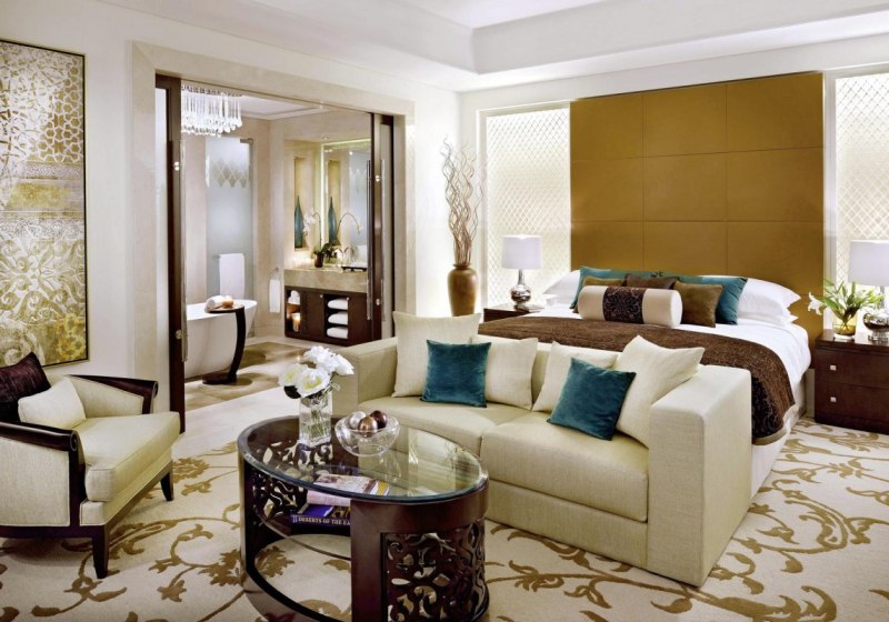 Die Zimmer beginnen großzügig: Palm Manor House Premier und Palm Beach Premier bieten rund 65 Quadratmeter, Juniorsuiten etwa 100 Quadratmeter. Überall erwarten Euch Balkon oder Terrasse sowie Bäder mit freistehender Badewanne und begehbarer Regendusche – ein klares, hochwertiges Setup für entspannte Abende.