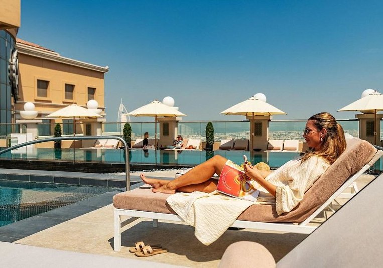 Der Tag beginnt für Euch unkompliziert: 24-Stunden-Rezeption, Concierge, Valet und hoteleigener Shuttleservice sorgen für reibungslose Abläufe. Danach zieht es Euch an den Pool, ins Fitnessstudio oder auf die Dachterrasse, bevor Ihr am Abend zwischen Restaurant, Hotelbar und Poolbar wählt. Wer zentral wohnen und zugleich eine klare Struktur für Arbeit, Familie und Genuss möchte, findet hier einen klugen, zeitgemäßen Rückzugsort im Herzen Dubais.