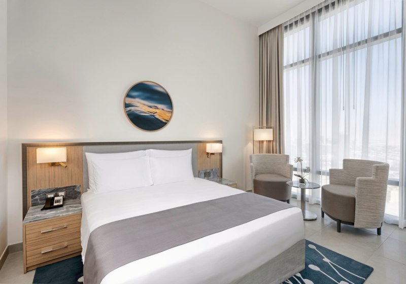 Im The First Collection at Jumeirah Village Circle, a Tribute Portfolio Hotel wohnt Ihr in einem urbanen Haus im Wohnviertel Jumeirah Village. Das Ambiente wirkt zeitgemäß, klar strukturiert und auf angenehme Abläufe ausgelegt. Öffentliche Bereiche sind klimatisiert, WLAN ist präsent, und mit 491 Wohneinheiten findet Ihr genug Raum, ohne dass es unübersichtlich wirkt. Der Aufenthalt fühlt sich unkompliziert und strukturiert an.