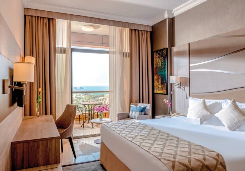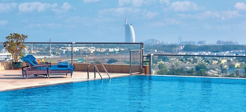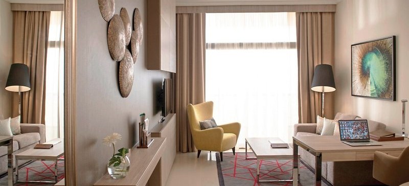 Die Atmosphäre ist urban und funktional, mit Rückzugsorten am Außenpool und in ruhigen Lobbys. Internationale Küche in mehreren Restaurants, darunter das All-day-dining La Terrasse, bildet den kulinarischen Rahmen. Als Dry Hotel verzichtet das Haus konsequent auf Alkoholausschank – klar kommuniziert und verlässlich umgesetzt. Dank Fitnessstudio und Spa verbindet Ihr Euren Tag nach Wunsch mit Aktivität oder Erholung. Für Strandstunden bringt Euch der Shuttle zum Jumeirah Open Beach; Shopping erreicht Ihr bequem über den Transfer zur Dubai Outlet Mall.