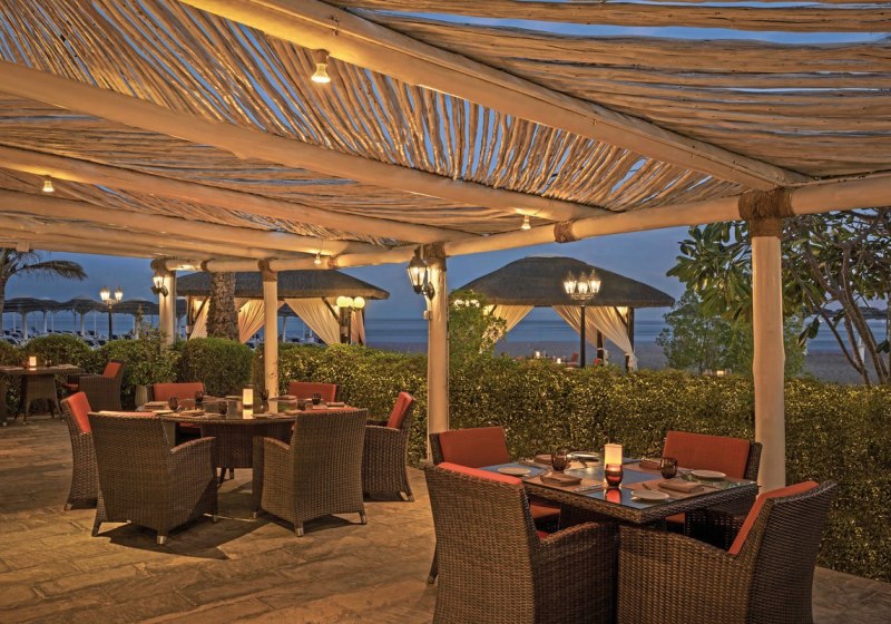 Ihr wählt zwischen mehreren Adressen: Im Mozaique All-day-dining Restaurant esst Ihr den Tag über, das Waves Beach Restaurant serviert direkt am Meer, und in der Al Falaj Lobby lädt das Café zu einer Pause ein. Bars verteilen sich über das Resort, darunter eine Swim-up-Poolbar.