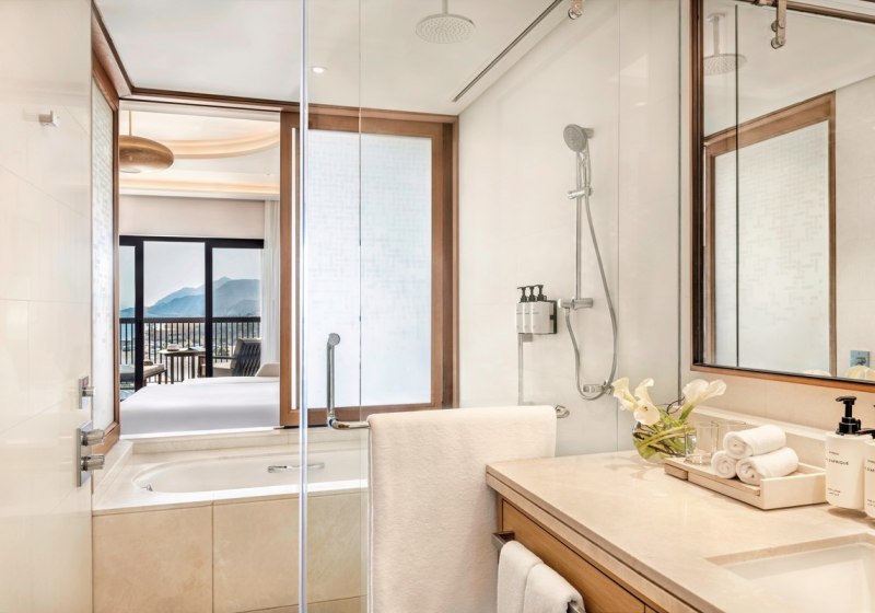 Vier temperierbare Außenpools erlauben Badepausen unabhängig von Tageszeit und Saison, das Fitnessstudio bietet Training von Cardio bis Kraft und bei Bedarf mit Personal Trainer. So verbindet Ihr Erholung und Aktivität ohne Umwege. Highlight: Spa by L’Occitane mit Hamam und abgestimmten Treatments.