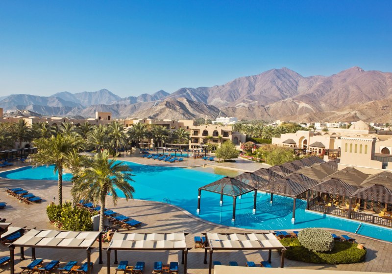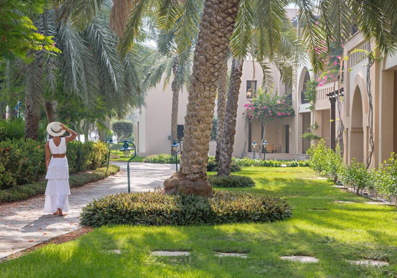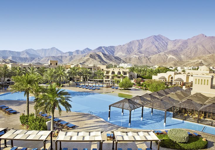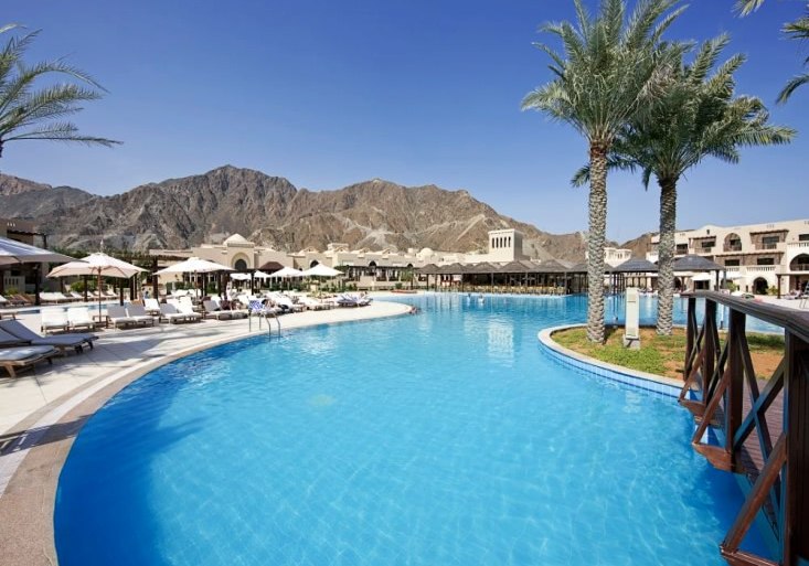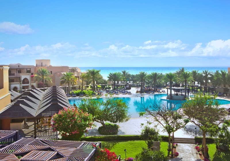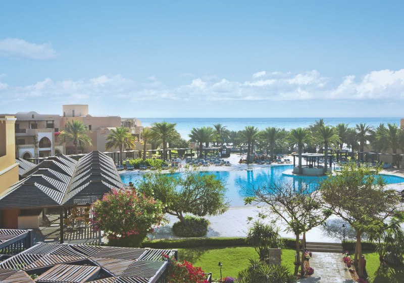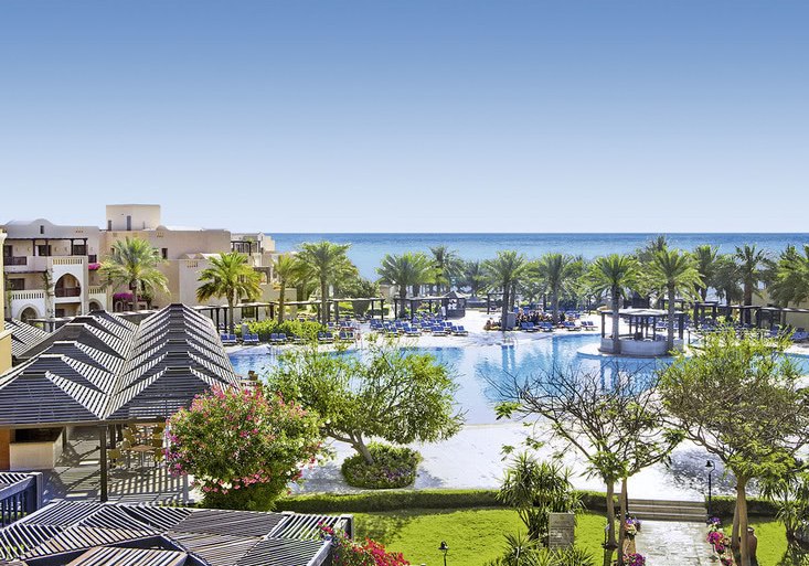 Im Miramar Al Aqah Beach Resort wohnt Ihr direkt am 400 Meter langen Privatstrand von Al Aqah – das Meer vor Augen, das Hajar-Gebirge im Rücken, und viel Raum für ruhige Tage oder aktive Stunden. Das Resort setzt auf Großzügigkeit: ein Haupthaus, mehrere dreistöckige Wohneinheiten und weitläufige Außenbereiche mit Pool, Kinderbecken und Sonnenterrassen. Familien findet Ihr im Miniclub und auf dem Spielplatz, Aktive im Fitnessraum oder am Strand bei Wassersport. Highlight: Direkter Privatstrand mit bequemer Strand- und Poolausstattung für entspannte Tage.