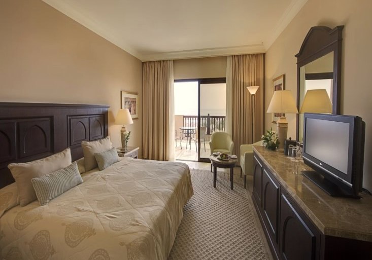Ihr bezieht klimatisierte Zimmer mit Balkon oder Terrasse, Bad mit Duschbadewanne und WC, Föhn sowie TV, Safe, Minibar und Kaffee-/Teezubereiter. Zur Auswahl stehen Lagen mit Garten-, Pool- oder seitlichem Meerblick. Familienzimmer bieten teils eine Schiebetür und zwei Sofabetten – ideal, wenn Ihr getrennte Schlafzonen wünscht. Highlight: Klare Ausstattung plus wählbarer Ausblick für Eure Prioritäten.
