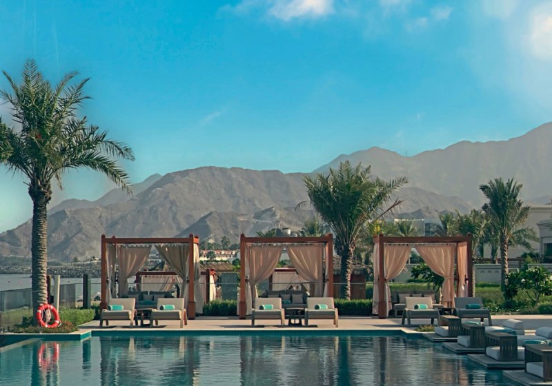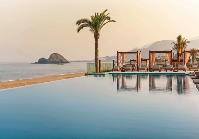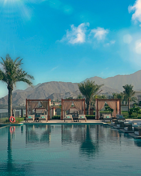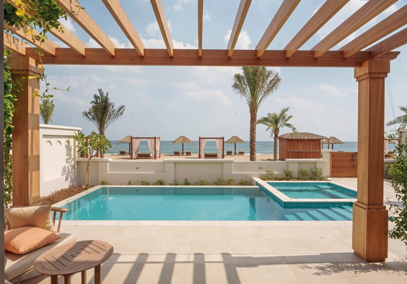 Der Standort in Dibba liegt direkt am flach abfallenden Sandstrand. Sonnenschirme und Liegen sind am Strand bereitgestellt, sodass Ihr zwischen Meer und Villa pendelt, ohne Umwege einplanen zu müssen. Das Ortszentrum von Dibba erreicht Ihr nach etwa 20 Kilometern, was Ausflüge und Besorgungen klar planbar macht. Der Flughafen Dubai (DXB) liegt in rund 144 Kilometern Entfernung und dient als zentrale Anreiseadresse. Die Lage vereint Küstenkontakt mit praktikabler Distanz zu städtischen Bezugspunkten.