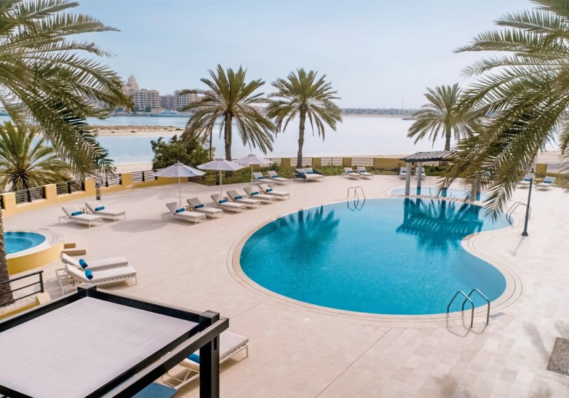 Das Resort liegt in Al Jazirah Al Hamra, Ras Al Khaimah, direkt an einem 650 Meter langen Sandstrand. Bis Ras Al Khaimah sind es etwa 15 Kilometer; die Dubai Mall erreicht Ihr nach rund 75 Kilometern. Die Lage gilt als ruhig und eignet sich für entspannte Strandtage mit gutem Zugang zu regionalen Ausflugszielen.