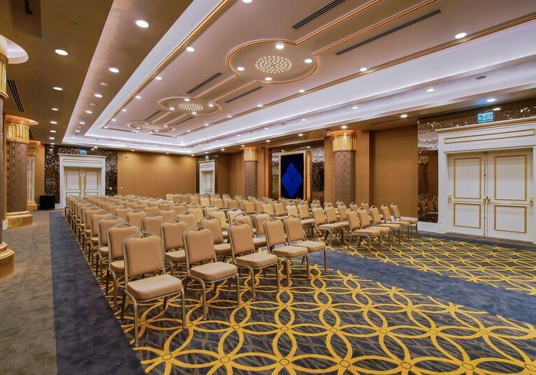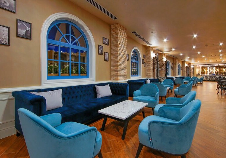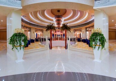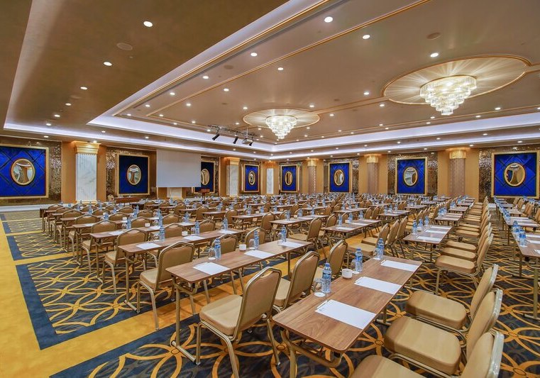 Die öffentlichen Bereiche wirken weitläufig und funktional: Lobby mit 24-Stunden-Rezeption, Theatersaal und ein Kongresszentrum mit Tagungstechnik. WLAN ist in Zimmern und öffentlichen Bereichen verfügbar. Shops, Minimarkt und Souvenirangebote, Friseur sowie medizinische Versorgung ergänzen die Infrastruktur des Resorts.