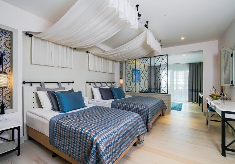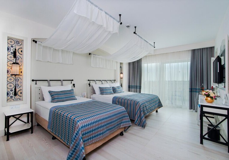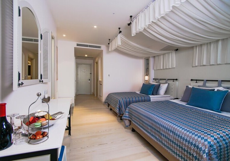 Praktische Details wie Schalldämmung, unterschiedliche Bettformate und Verbindungsmöglichkeiten unterstützen verschiedene Reisepläne. Ausblicke reichen je nach Kategorie bis zu Garten- oder Poolblick. Die Zimmer liegen in einem Haus von 2018 mit sechs Stockwerken und klaren Wegen zu Pools, Strand und Restaurants.