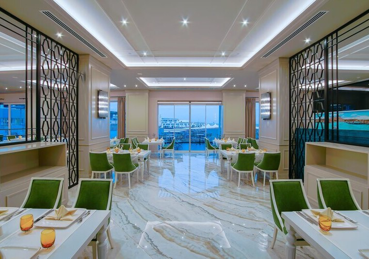 Die Atmosphäre bleibt entspannt und gleichzeitig vielseitig: tagsüber Wasserspaß im Aquapark mit sieben Rutschen, abends Shows, Live-Musik oder die Diskothek. Kulinarisch erwartet Euch ein Mix aus Buffet, À-la-carte, Patisserie und Strandbar. Wer mehr sucht, nutzt Konferenzbereiche, Shops oder das Casino. Baujahr 2018 und schnelles WLAN in den öffentlichen Bereichen und Zimmern runden das Bild ab.