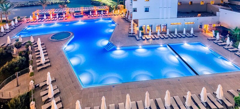 Im Vuni Palace Hotel & Casino wohnt Ihr direkt am privaten Sand- und Kiesstrand von Kyrenia (Girne). Das Haus verteilt 258 Zimmer auf mehrere Gebäude – darunter Haupthaus, Loveboat, Hilltop und Springtop – und verbindet Badeferien mit städtischer Nähe. Casino, Shows und Live-Musik setzen abends Akzente, tagsüber lockt der Strand.