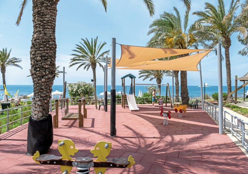 Ihr startet in den Tag mit kurzen Wegen: Frühstück im Atrium, später ein Platz an einem der Süßwasserpools oder auf der Liegewiese am Meer. Abends klingt Euer Tag mit Live-Musik oder Shows aus. Wer Abwechslung sucht, spaziert zur nahen Promenade und in das touristische Zentrum – oder bleibt für mediterrane Küche à la carte im Resort.