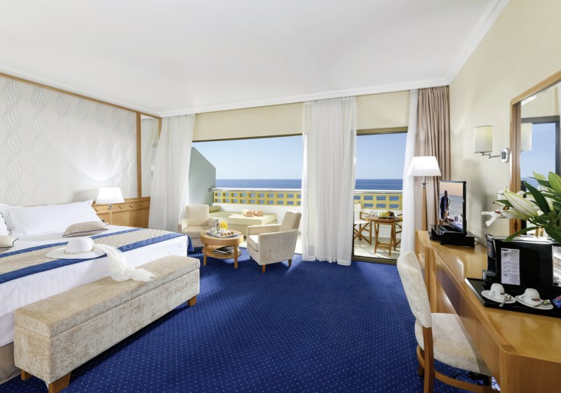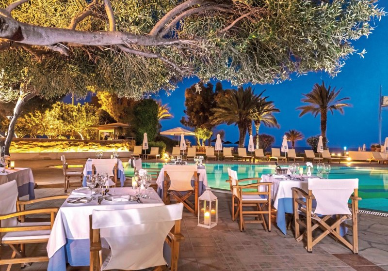 Fünf Restaurants geben Eurem Aufenthalt eine genussvolle Struktur – vom Frühstück bis zum Abend mit Wahl zwischen Buffet und À-la-carte, darunter das Restaurant „Aphrodite“. Mit Rooftop-Cocktailbar, Poolbar und Strandbar seid Ihr kulinarisch ebenso flexibel wie atmosphärisch. Das Spa mit zwei Saunen, Dampfbad und Hallenbad mit Whirlpool bietet einen klaren Gegenpol zum Mittelmeer vor der Tür. Der Service wirkt aufmerksam und routiniert, die Ausstattung durchdacht – so fühlt sich Euer Tag fließend und angenehm an. Highlight: Direkte Strandlage und Adults-only-Konzept für ruhige, fokussierte Erholung.