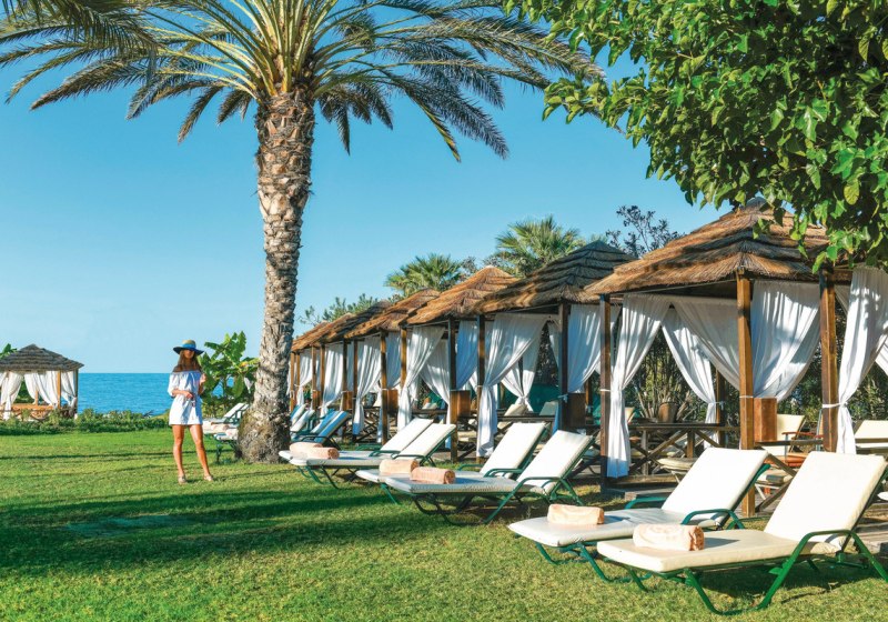 - Servicepaket: Kostenfreie Liegen, Schirme und Tücher an Pool und Strand.