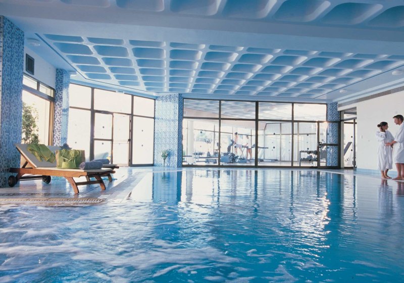 - Erholungsbereich: Spa mit zwei Saunen, Dampfbad und Hallenbad mit Whirlpool.