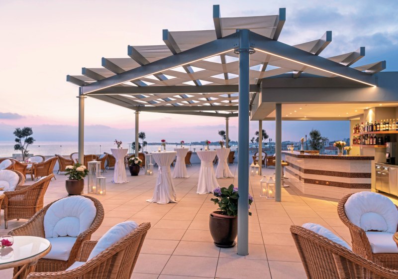 Die Unterhaltung im Constantinou Bros Athena Royal Beach Hotel bleibt erwachsen und wohldosiert. Ein Programm für Erwachsene setzt Akzente, ohne den Tagesrhythmus zu dominieren. Abends schafft Livemusik stimmige Momente – genau richtig, wenn Ihr den Strandtag entspannt ausklingen lassen wollt. Die Bars liefern die passende Bühne, von der Poolbar bis zur Rooftop-Cocktailbar mit weiterem Blick über die Küstenlinie.