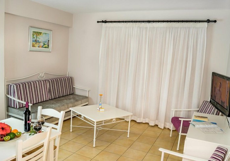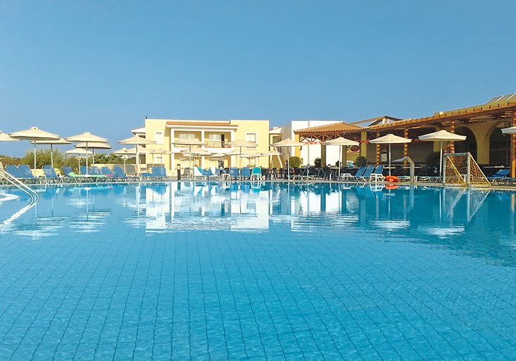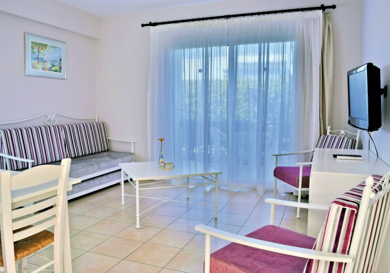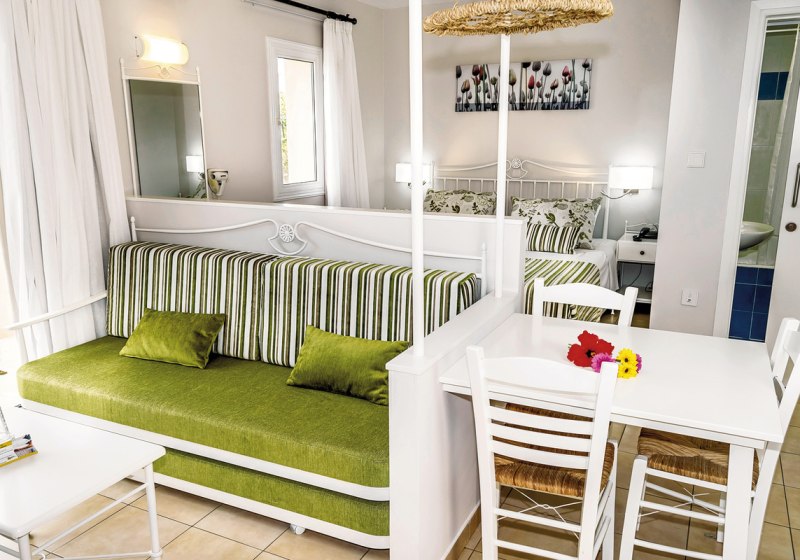 Im Aktea Beach Village wohnt Ihr in einem charmanten Feriendorf mit 148 Wohneinheiten, verteilt auf niedrige Nebengebäude. Die Anlage wirkt übersichtlich, mit gepflegten Wegen, viel Aufenthaltsfläche im Freien und kurzen Distanzen zwischen Pool, Sonnenterrassen und den Gemeinschaftsbereichen. Familien und Strandurlauber finden hier eine entspannte Basis, die dank Küchenzeilen in Studios und Apartments ebenso praktikabel wie komfortabel ist.