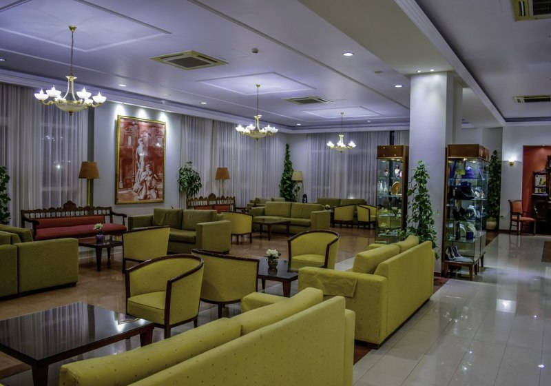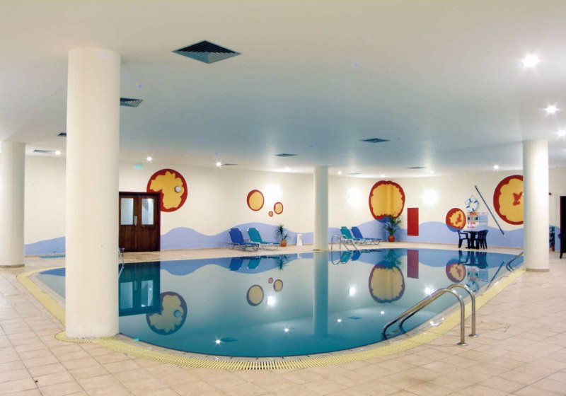 Die Gemeinschaftsbereiche sind klar strukturiert: Lobby und Rezeption, Sonnenterrassen mit Liegen, ein Süßwasser-Außenpool plus Kinderbecken sowie Außensitzflächen für entspannte Übergänge zwischen Bade- und Essenszeiten. WLAN steht in den öffentlichen Bereichen bereit, ein Minimarkt deckt den täglichen Bedarf.