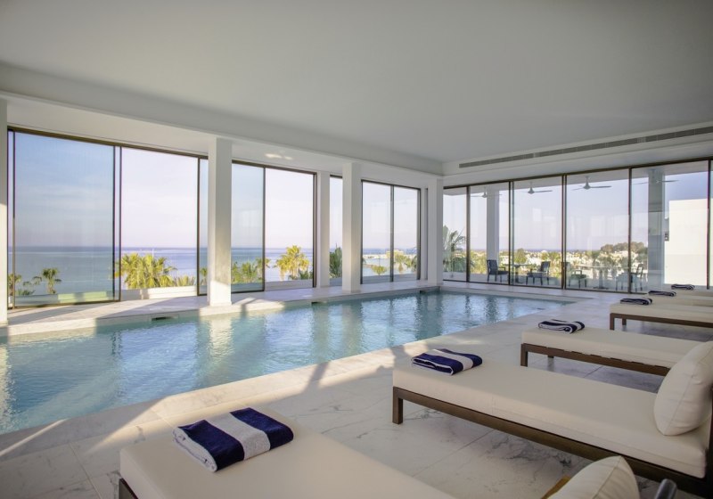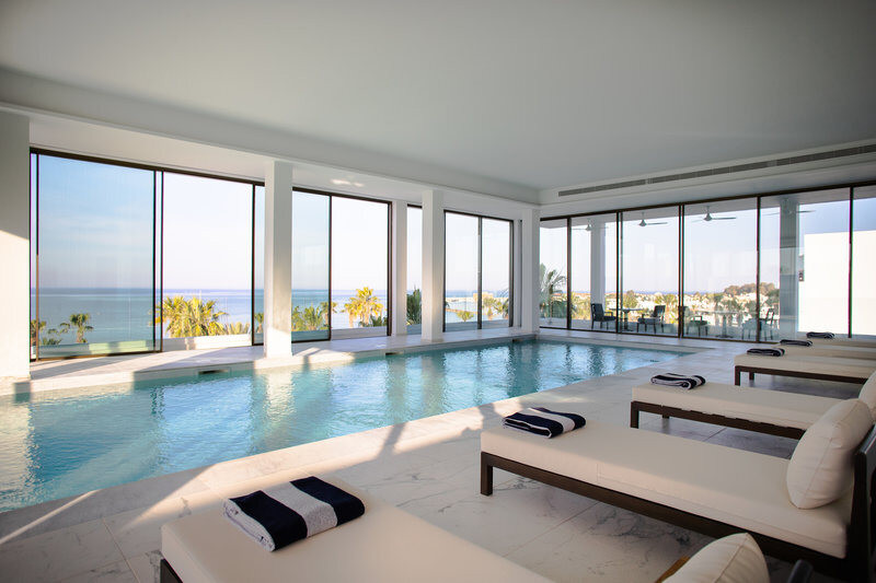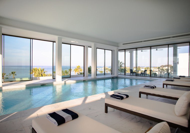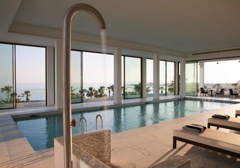 Im „Ouranos“-Spa findet Ihr einen ruhigen Rahmen mit Hallenbad für gleichmäßige Bahnen oder entspannte Pausen. Anwendungen reichen von Gesichtsbehandlungen über Maniküre und Pediküre bis zu Körperpeeling und ‑packung. Sauna und Whirlpool ergänzen die Erholungsphasen sinnvoll. Highlight: „Ouranos“-Spa vereint Hallenbad, Anwendungen und Rückzug.