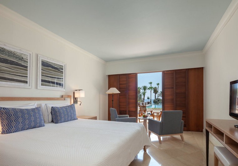Mit 244 Zimmern, stilvollen Loungebereichen und verlässlichem 24‑h‑Service fühlt Ihr Euch umsorgt, ohne dass es formell wird. Familien freuen sich über Verbundzimer, Paare über Deluxe‑Zimmer mit Meerblick und größerem Balkon. Kulinarisch variieren Eure Tage zwischen mehreren Restaurants, Bars und stimmungsvollen Themenabenden. Dazu bietet das „Ouranos“-Spa einen ruhigen Gegenpol zum lebendigen Küstenflair von Paphos. Highlight: Abende mit Livemusik und Themenformaten setzen genussvolle Akzente.