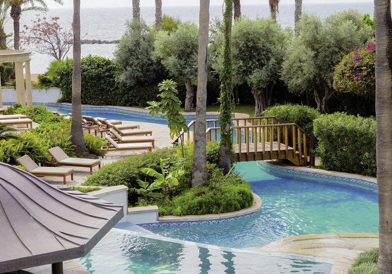 Willkommen im Annabelle, einem 5‑Sterne-Resort direkt am Meer in Paphos. Euch erwartet eine weitläufige Gartenlandschaft von rund 2,5 Hektar mit verschlungenen Wegen, Wasserkaskaden und einer Felsengrotte am Außenpool. Die Atmosphäre wirkt gelassen und zugleich gepflegt: Ihr entscheidet zwischen ruhigen Stunden am Wasser und geselligen Abenden mit Programm. Highlight: Großzügige Gartenanlage mit Wasserfällen schafft entspannte Rückzugsorte.