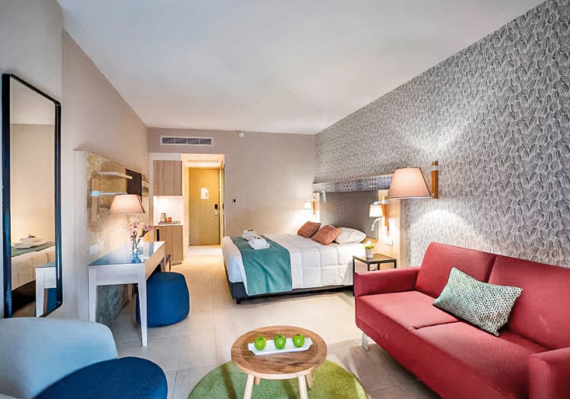 Für Familien stehen passende Einheiten bereit; in manchen Familienzimmern ersetzt ein bodentiefes Fenster den Balkon. Ein Schlafsofa erweitert den Raum für Nachwuchs. Der Stil ist funktional, mit klaren Linien und robusten Materialien. Highlight: Familienoptionen mit Schlafsofa ermöglichen flexible Belegung.