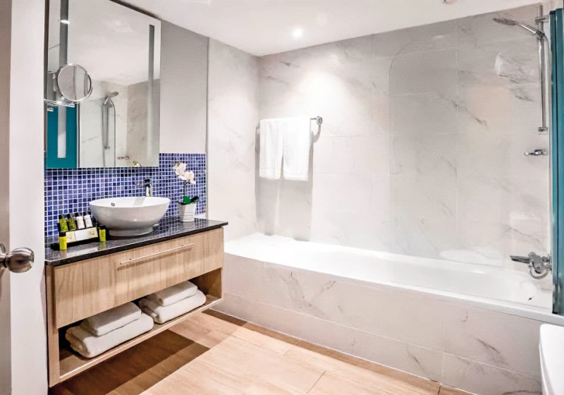 - Durchdacht: Kaffee‑/Tee‑Station, Minikühlschrank und Safe für Autonomie.