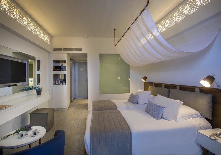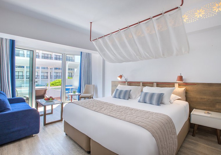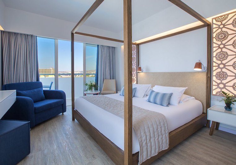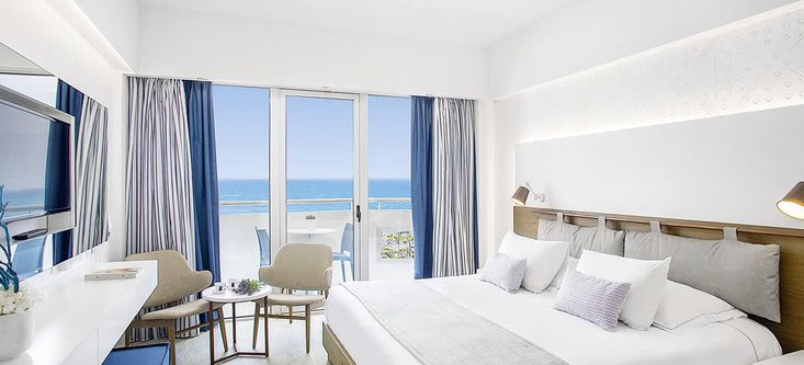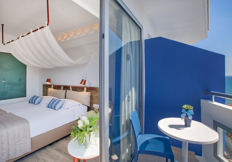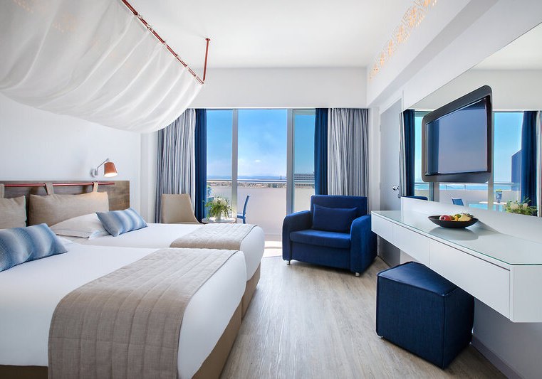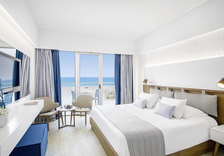 Ihr wohnt in Zimmern mit Balkon oder Terrasse, Klimaanlage, Safe, Sat-TV mit Radiokanal, Telefon und Minikühlschrank; eine Minibar ist auf Anfrage verfügbar. Bad/WC, Föhn und solide Ablagen sorgen für Ordnung. Viele Einheiten bieten Teppichboden; Nichtraucherzimmer sind ausgewiesen. Meerblick ist je nach Kategorie buchbar und rahmt den Tag mit klarer Horizontlinie.