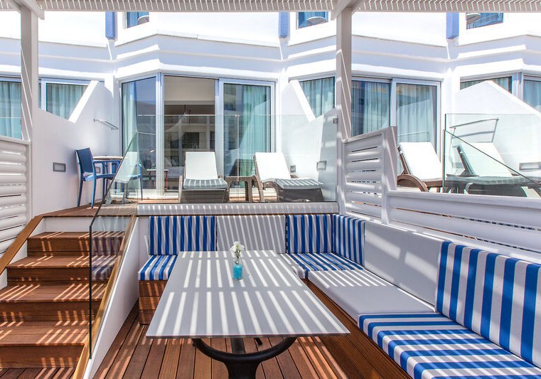 - Klug für Familien: Etagenbett und Juniorsuite mit möblierter Terrasse.